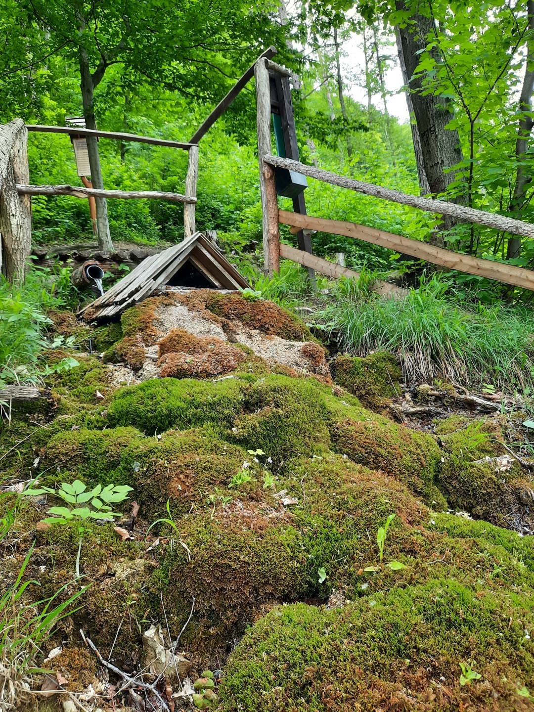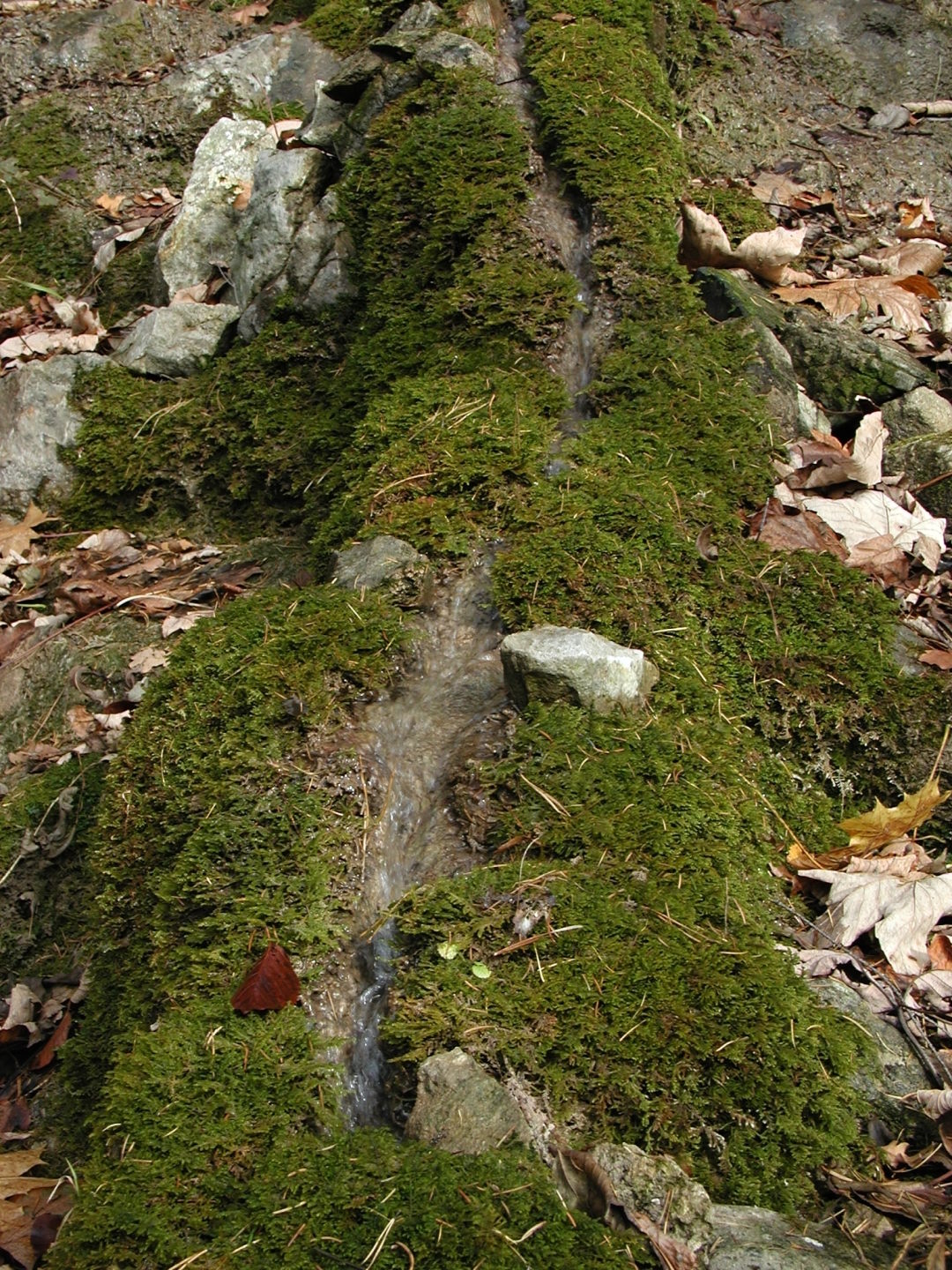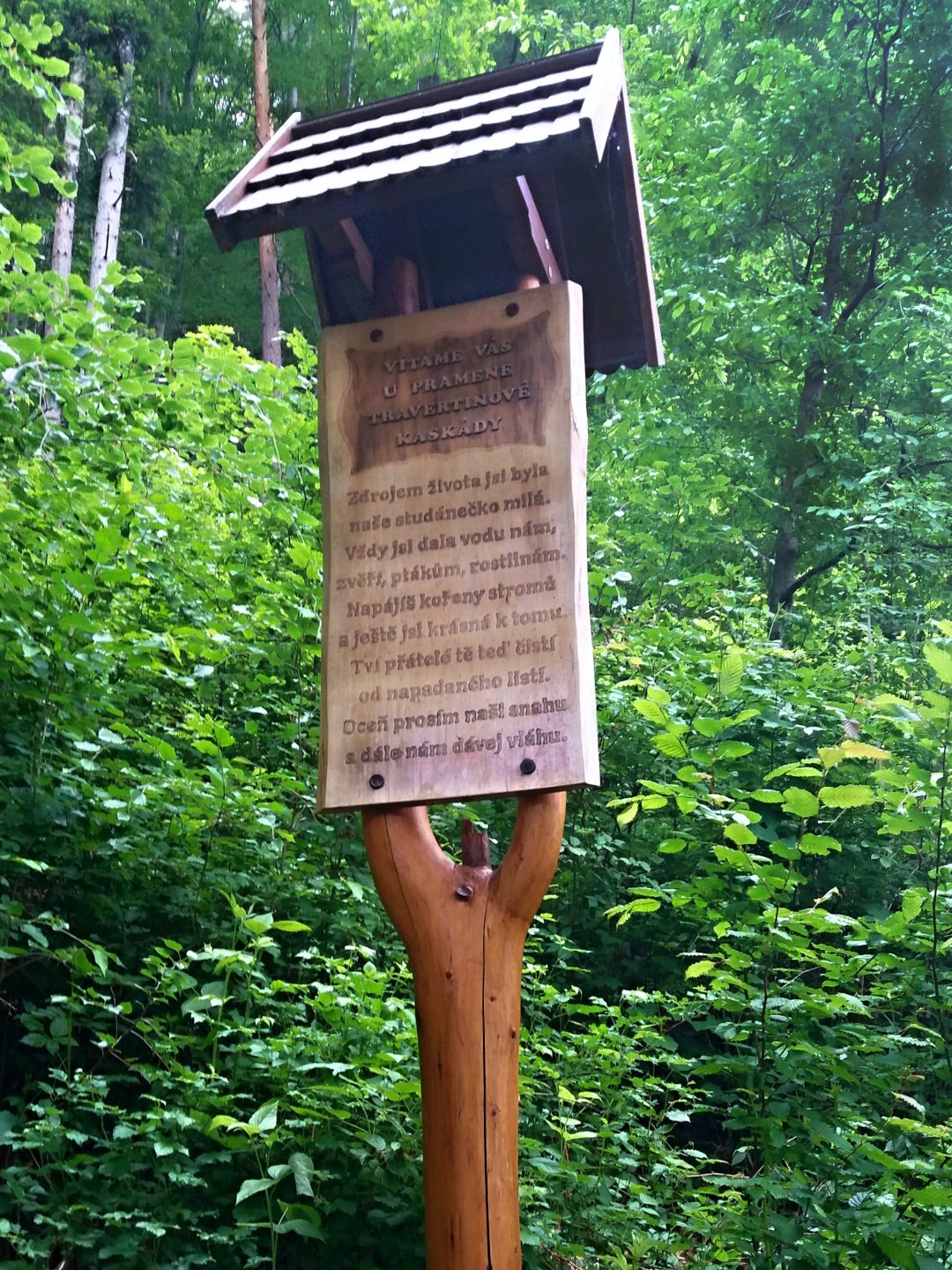 Podloží potůčku vyvýšeného až 120 cm nad okolní terén tvoří travertin s mělkým korytem na vrcholu.