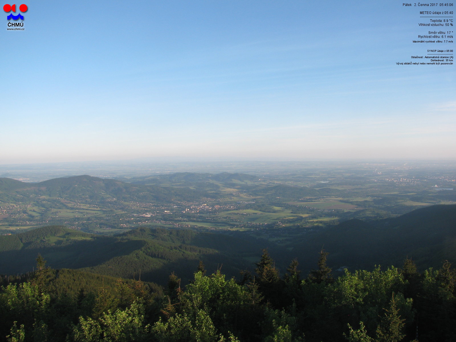 Kamera z vrcholu Lysé hory, směrovaná k jihovýchodu.