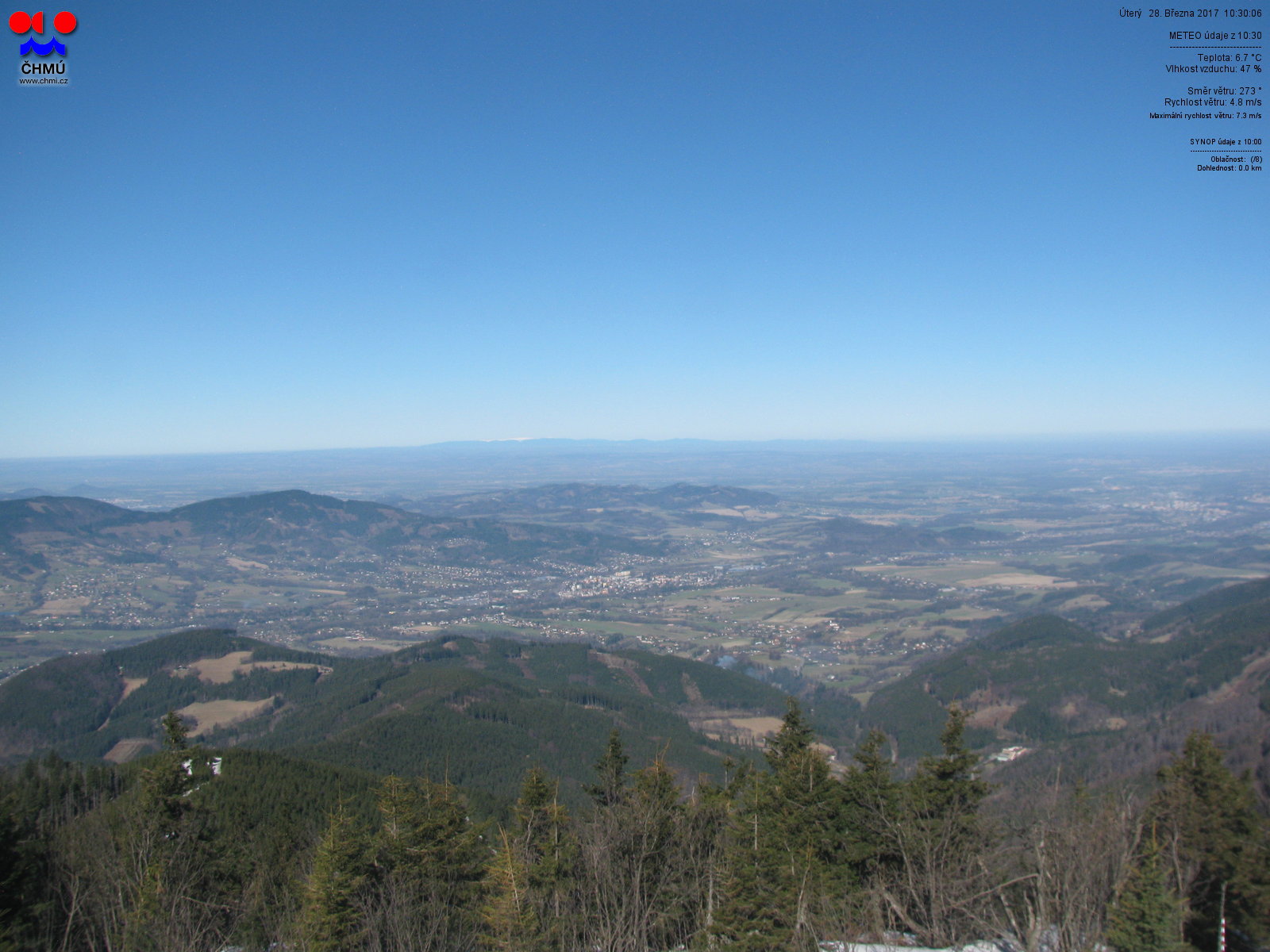 Kamera z vrcholu Lysé hory, směrovaná k jihovýchodu.