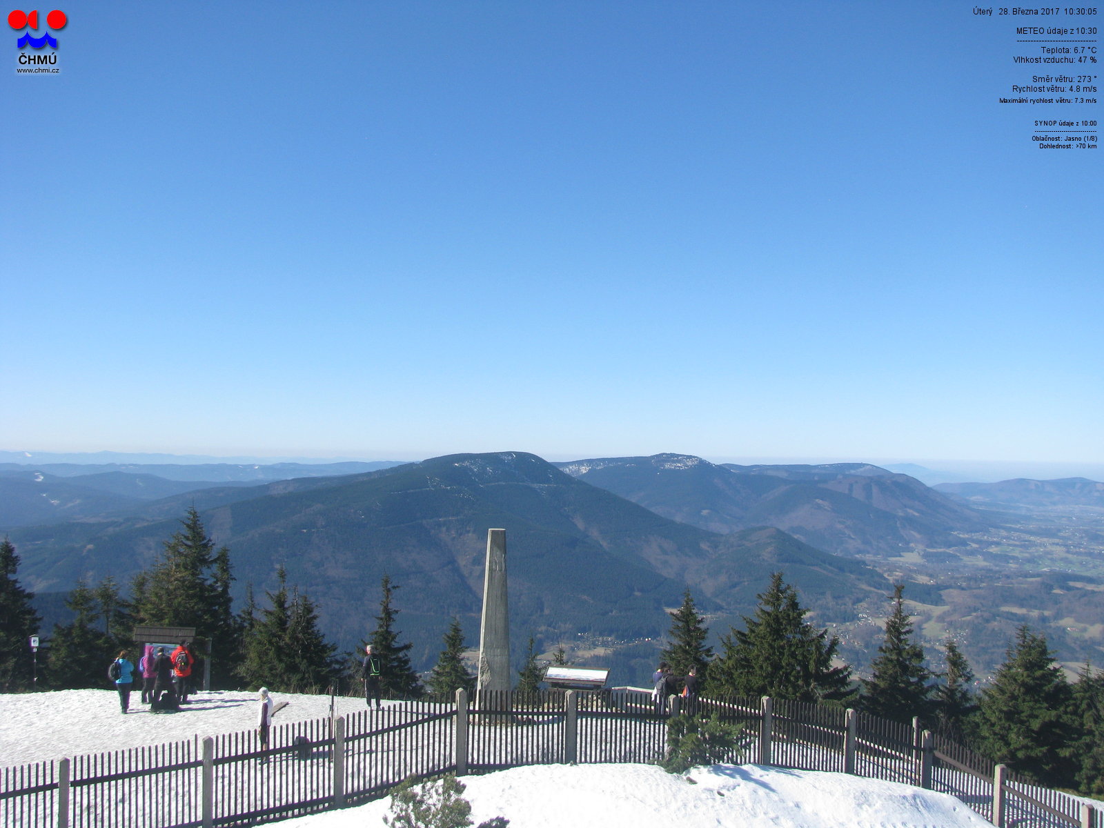Webová kamera Lysá hora, směrovaná k jihozápadu.