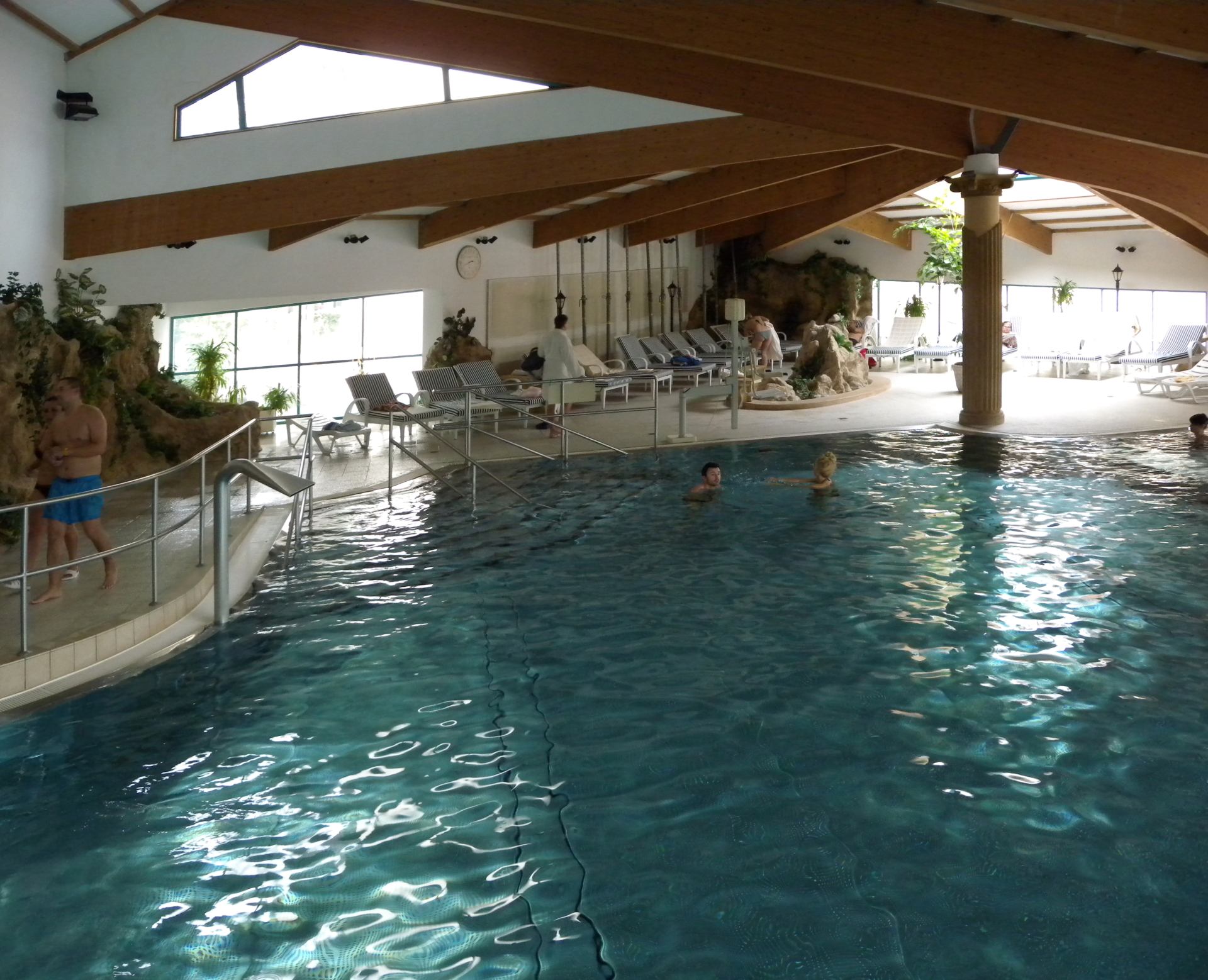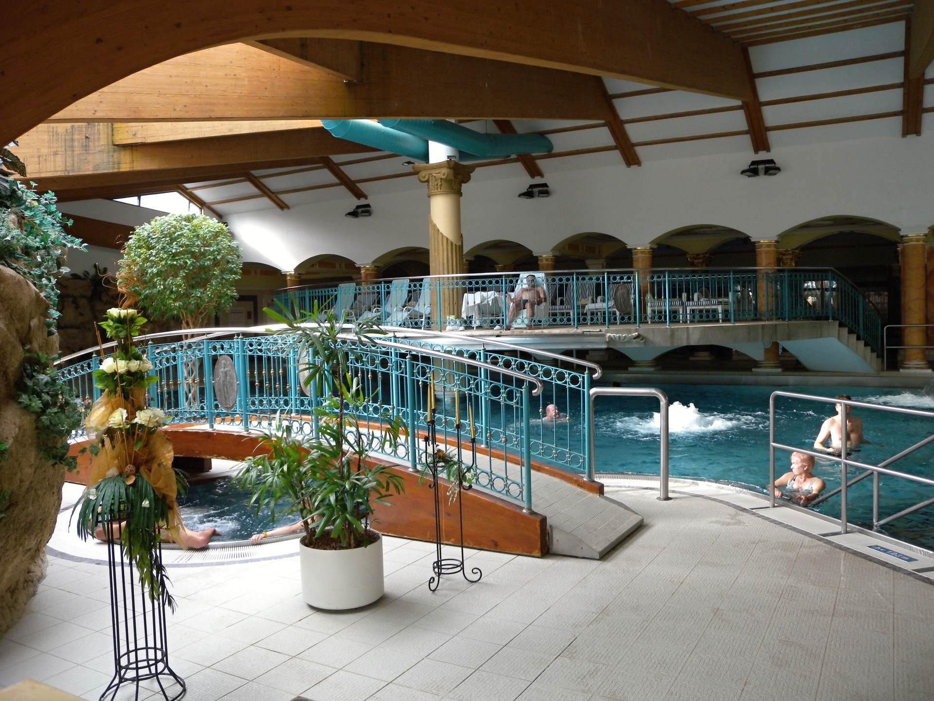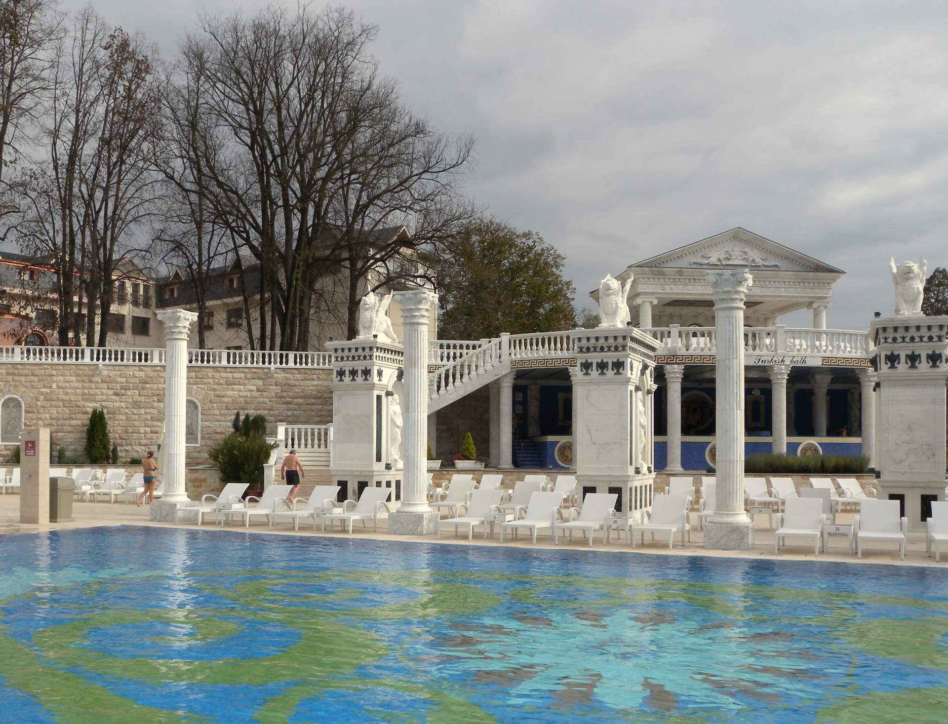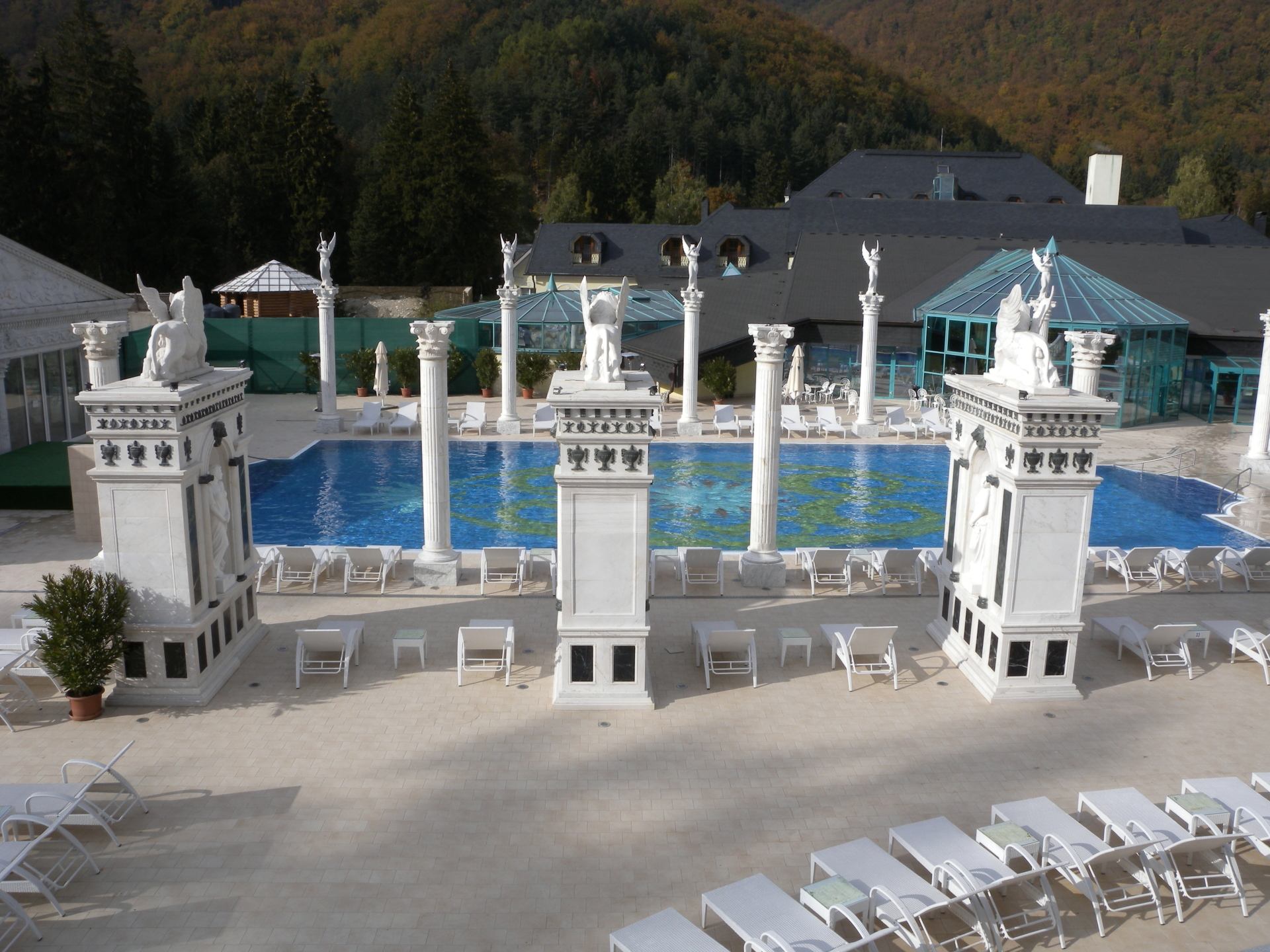 Do bazénu můžete vstoupit po schodech z venku, ale dostanete se tam i z vnitřního bazénu. Lidé, kteří rádi plavou než se vyhřívají v teplé vodě využijí Rekreační plavecký bazén, který je dlouhý 25 m, s vodou teplou 26-28° C. Příjemný dojem celého areálu vytváří velkolepá antická architektura prostorů, ve kterých se bazény nacházejí.