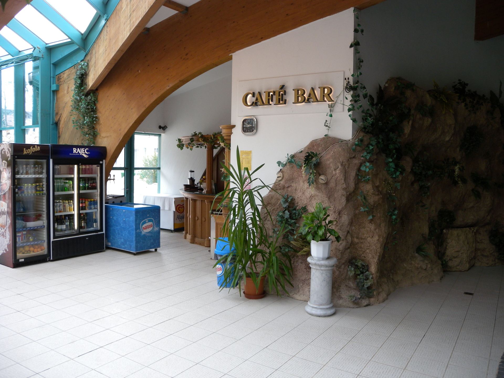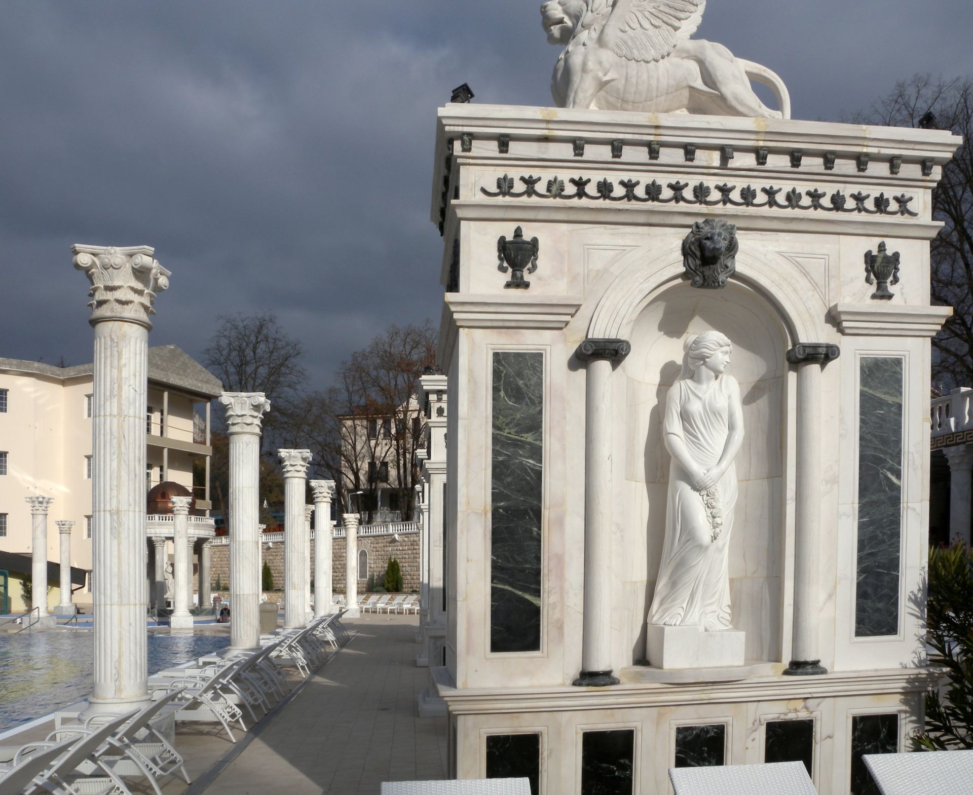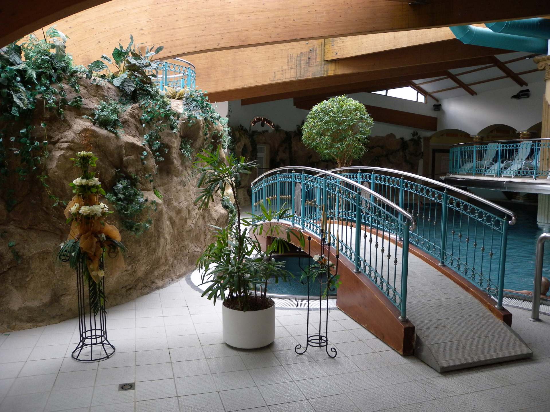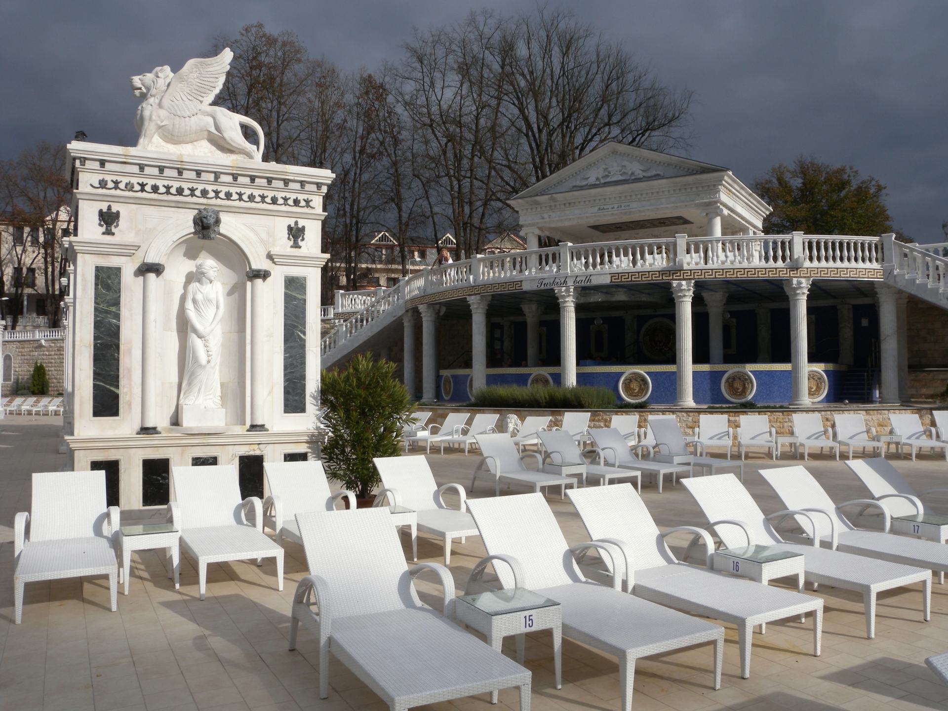 Do bazénu můžete vstoupit po schodech z venku, ale dostanete se tam i z vnitřního bazénu. Lidé, kteří rádi plavou než se vyhřívají v teplé vodě využijí Rekreační plavecký bazén, který je dlouhý 25 m, s vodou teplou 26-28° C. Příjemný dojem celého areálu vytváří velkolepá antická architektura prostorů, ve kterých se bazény nacházejí.