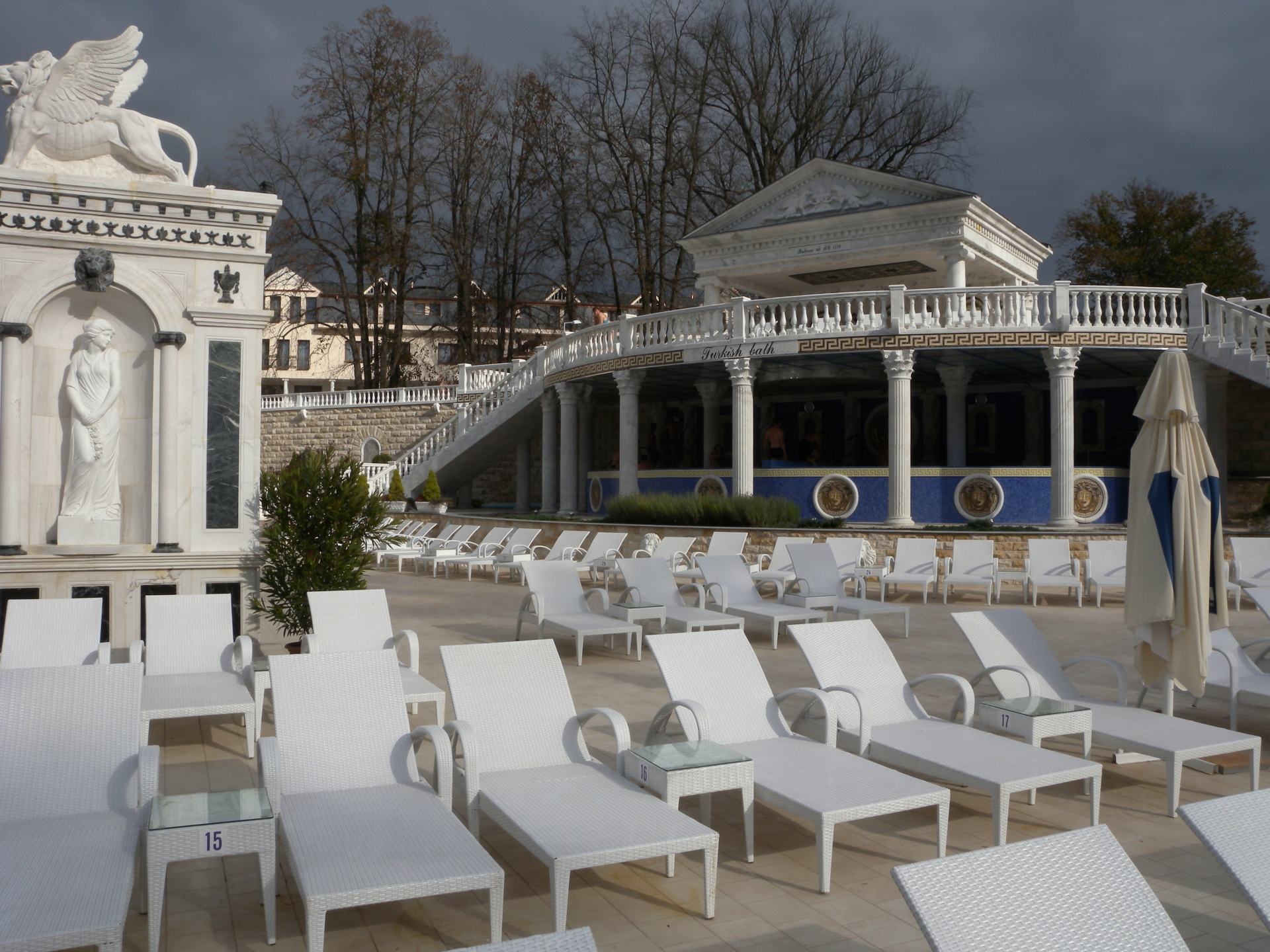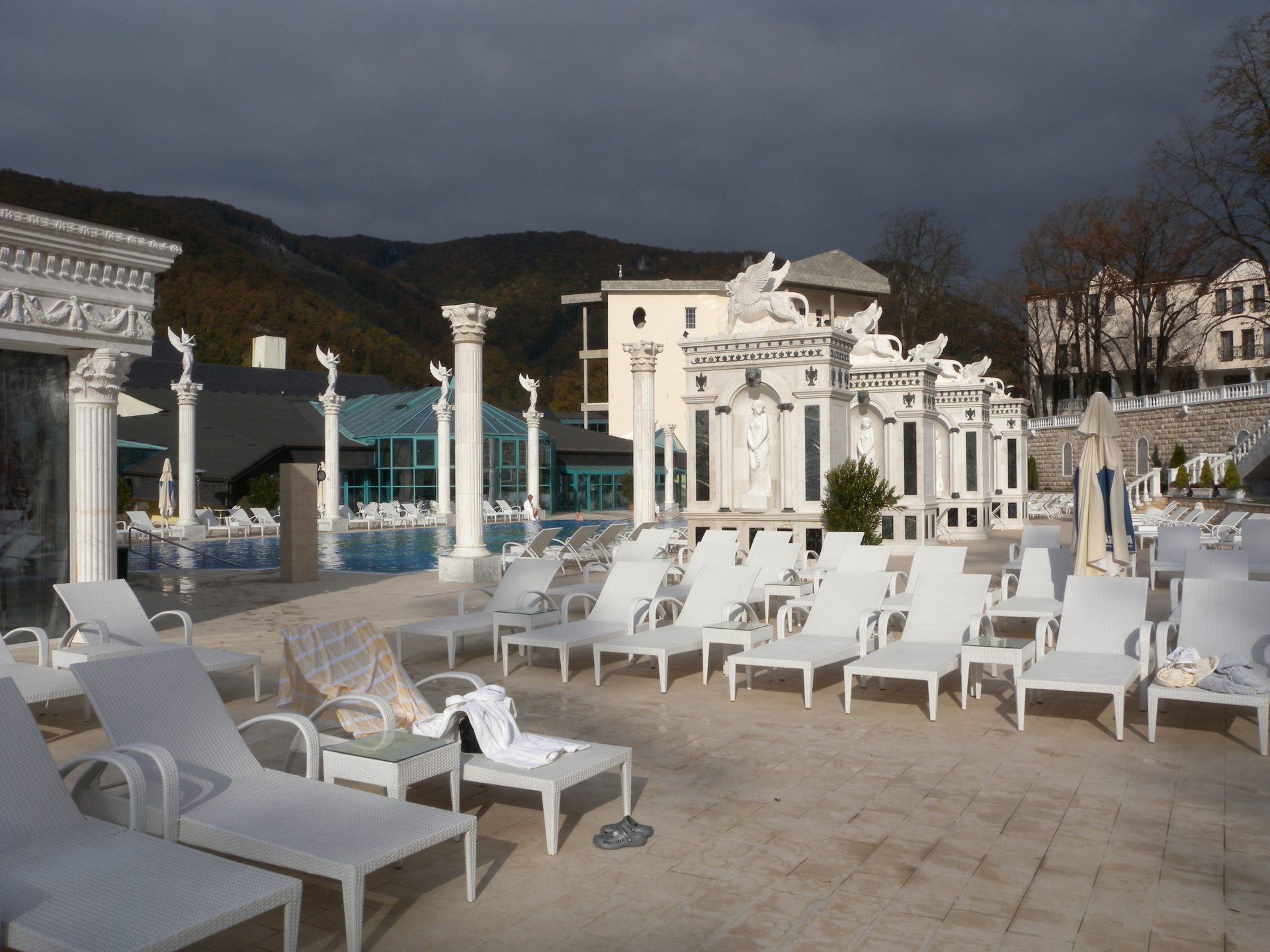 Relaxovat můžete na lehátkách, které jsou rozmístěné po celé délce v okolí bazénů. Po celou dobu hraje relaxační hudba. Při které se cítite příjemně. Venkovní bazény, které jsou otevřené celoročně jsou vyhledáváným místem i zahraničních turistů.