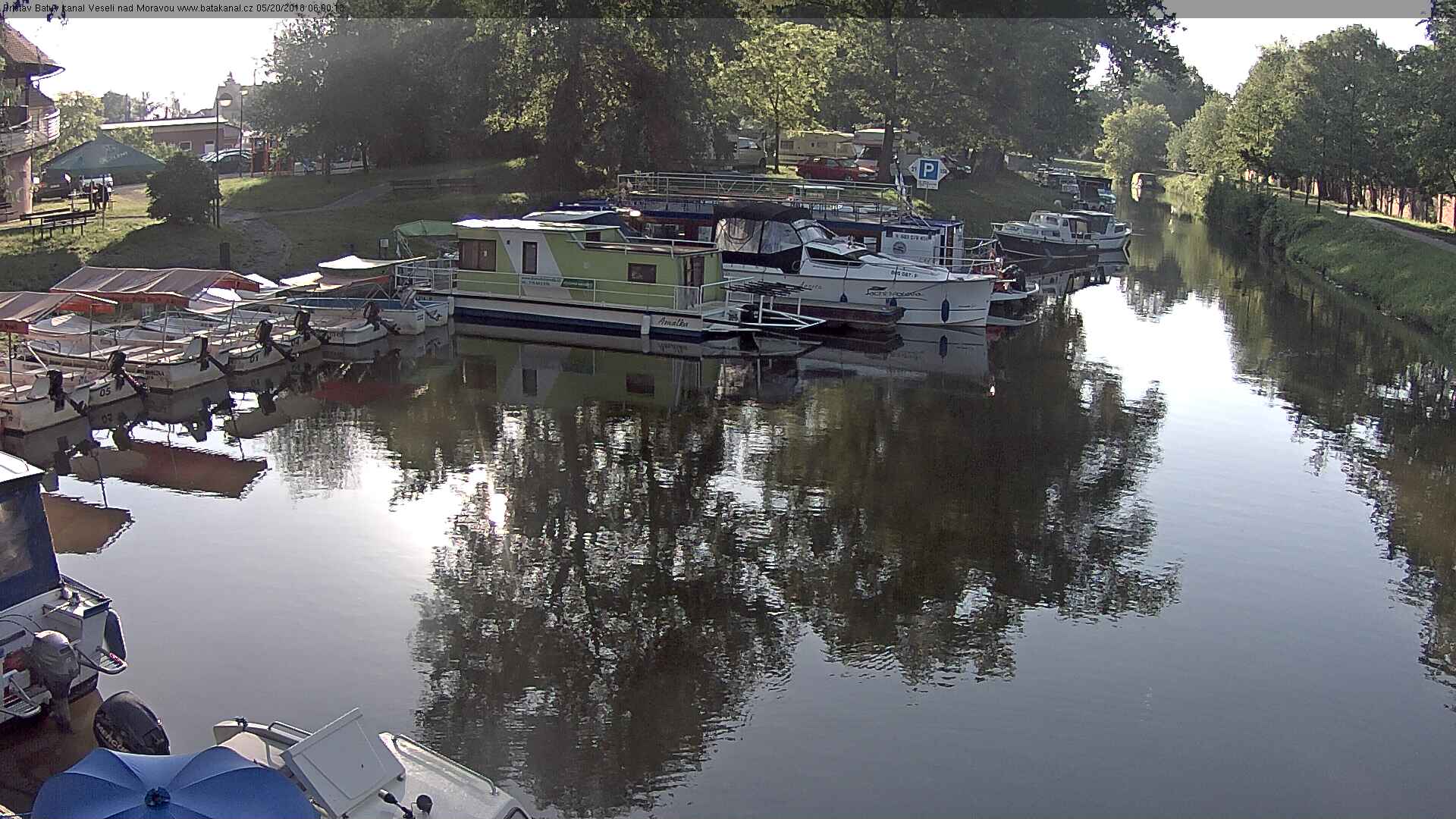 webkamera snímá přístav na Baťově kanálu ve Veselí nad Moravou