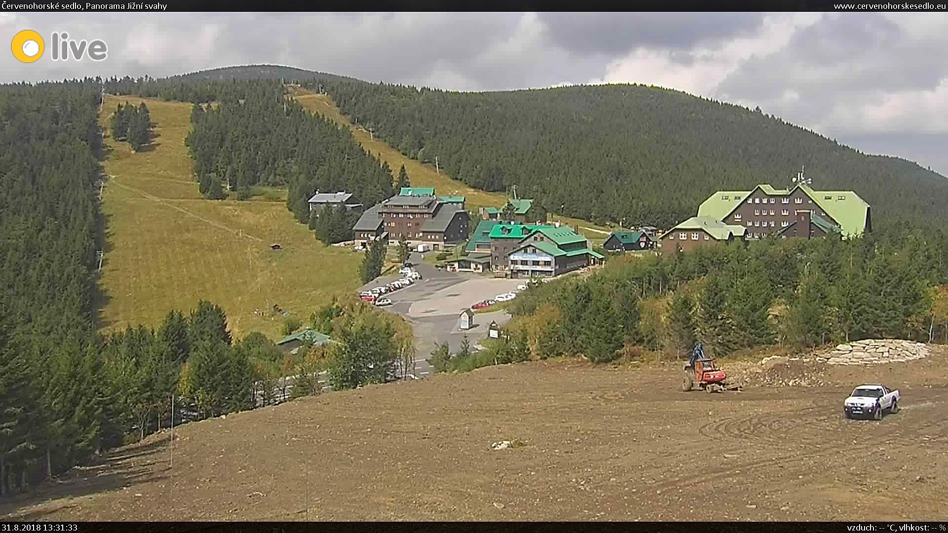 Webová kamera snímá hotel a sjezdovky na Červenohorském sedle.