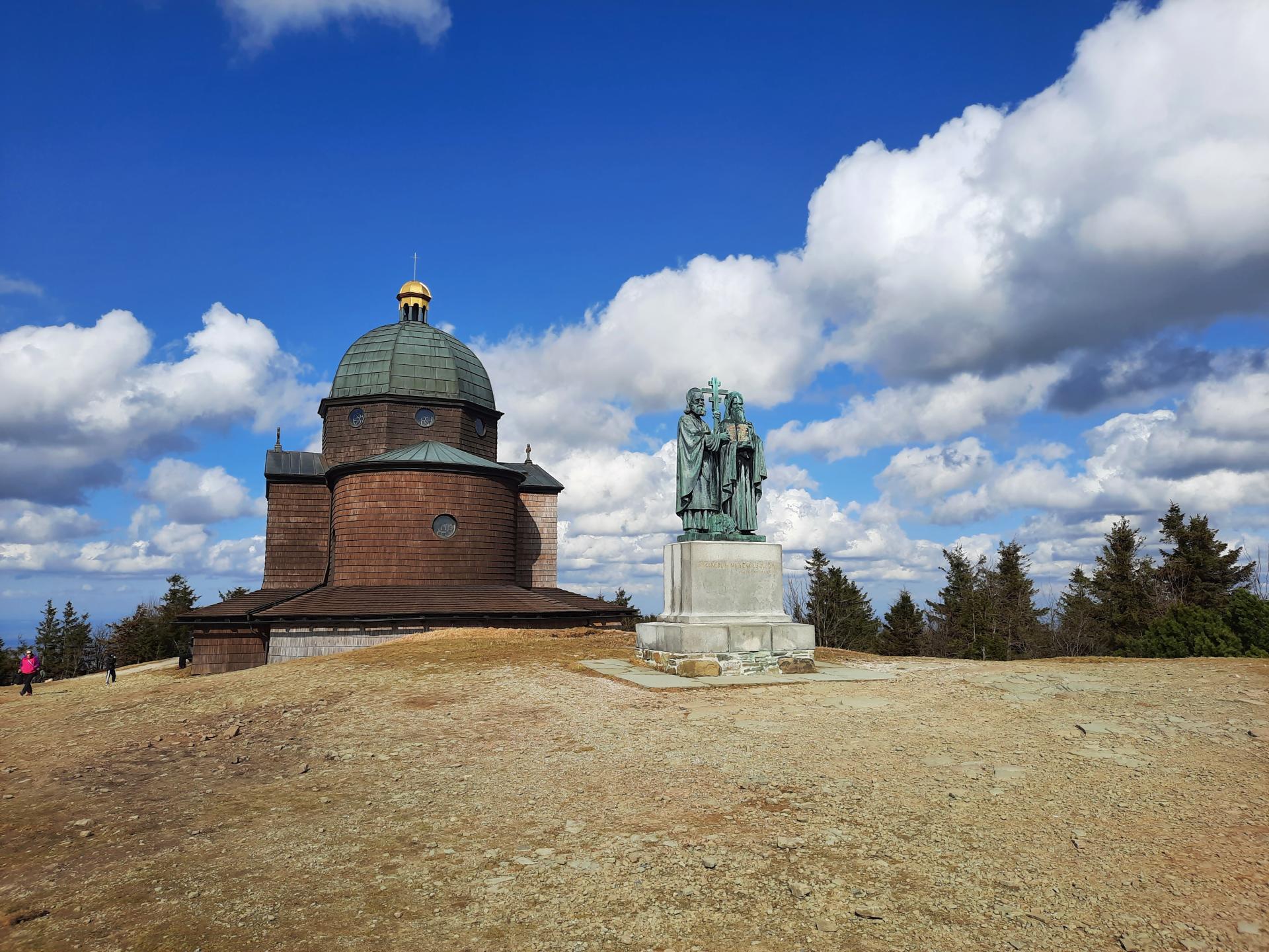 Vrcholku Radhoště 1 129 m n. m. v Beskydech vévodí kaple sv. Cyrila a Metoděje a jejich sousoší nesoucí nápis - Spravedliví na věky jsou živi. Kaple na Radhošti byla dokončena v roce 1 898. Sousoší sv. Cyrila a Metoděje bylo slavnostně odhaleno v roce 1931.