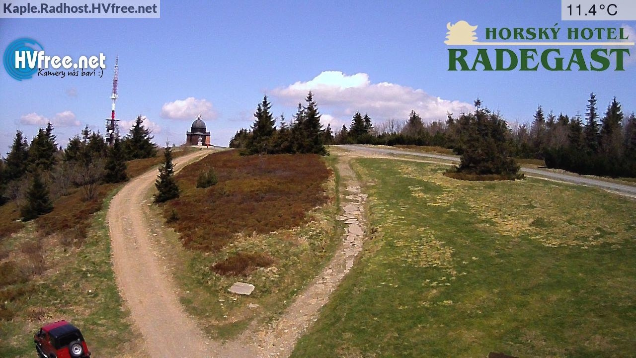 Pod vrcholem Radhoště stojí televizní vysílač a kousek níže Horský hotel Radegast, na kterém jsou umístěny webkamery Radhošt.