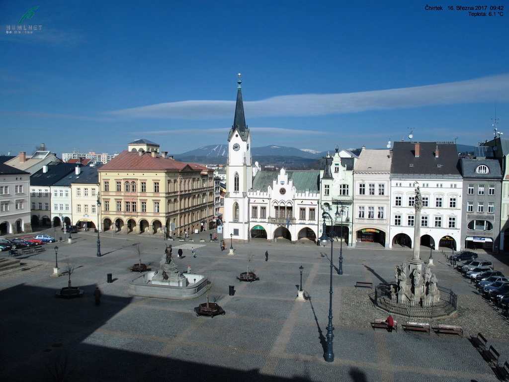 Webová kamera v okresním městě Trutnově na Krakonošově náměstí.