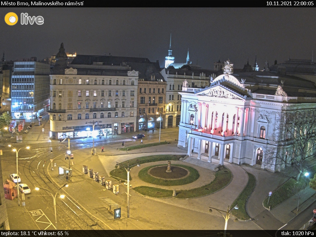 Kamera v Brně snímá Malinovského náměstí a Mahenovo divadlo